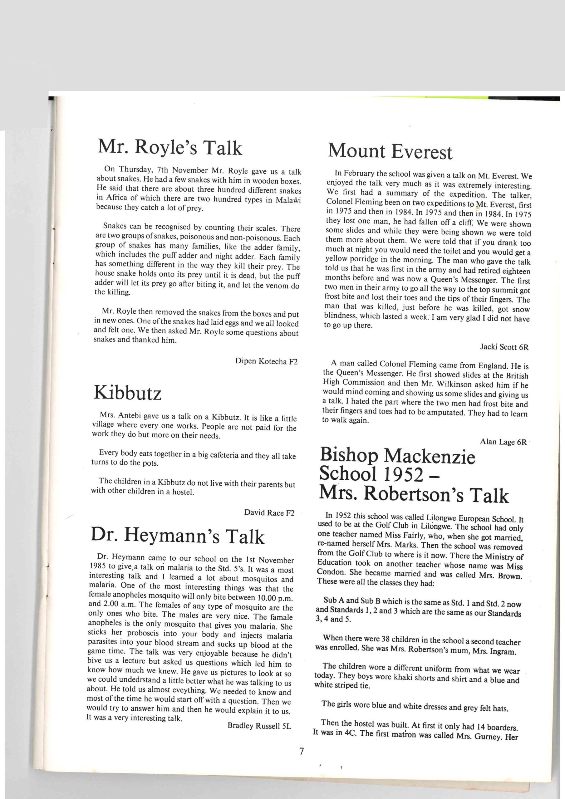 Extracted from The Mitre. Sascha Harper Kent, Year 5L, (1986, p.7):